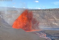 L’épisode 34 de l’éruption en cours du Kilauea a débuté le 1er octobre 2025 à 00h53 (heure locale). Les phénomènes précurseurs de l’épisode avaient commencé vers 21h47 le 28 septembre, avec des événements de "gas pistoning" produisant de petites fontaines sporadiques de 3 m de haut et de nombreux débordements de courte durée. Plus de 120 événements de ce type se sont produits par intermittence jusqu’au 30 septembre, 23h43, moment où des débordements soutenus et des fontaines de faible hauteur ont commencé dans la bouche nord. Ces fontaines ont ensuite augmenté en taille et en volume avec le début de la déflation sommitale à 00h53 le 1er octobre, marquant le début de l'épisode 34. Les fontaines de lave de la bouche nord ont rapidement gagné en vigueur, atteignant jusqu'à 100 m de hauteur et légèrement inclinées vers le nord-est. À 1h45, la bouche sud est entrée en éruption et est devenue la fontaine dominante de l'épisode, atteignant verticalement jusqu'à 400 m environ. L’activité des deux bouches a persisté pendant un peu plus de 6 heures, mais en diminuant progressivement de hauteur. Les deux bouches ont généré des coulées de lave canalisées qui ont recouvert une grande partie du secteur ouest du plancher du cratère Halemaʻumaʻu. La bouche sud a cessé son activité vers 7h, suivie de peu par la bouche nord à 7h03, marquant la fin de l'épisode 34. Cet épisode a produit un volume de lave estimé à environ 8,9 millions de mètres cubes pendant la nuit. Les deux évents ont produit un débit combiné record de 380 m3/s, soit environ le double du taux éruptif maximal mesuré lors des épisodes précédents. La fin l’épisode 34 a été marqué par une reprise de l’inflation au sommet du Kilauea. Un 35ème épisode est donc probable d’ici quelques jours.