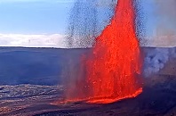 L'épisode 40, caractérisé par des fontaines de lave soutenues, de l’éruption en cours du Kilauea, a été précédé de nombreux débordements précurseurs qui ont débuté au niveau de la bouche sud le 8 janvier 2026. Les jours suivants, des fontaines de lave issues de la bouche sud ont alimenté des débordements se produisant à un rythme de plusieurs par heure, tandis que la bouche nord produisait des coulées de lave moins fréquentes et des projections souvent visibles à l'intérieur de la bouche. Une coulée de la bouche sud a parcouru 1 km de long. Le 12 janvier au matin, la bouche nord semblait présenter une ouverture rétrécie et générait un jet de lave arqué de 5 à 10 de haut dont l'intensité a considérablement augmenté à 8h13. Une forte déflation et une intensification du trémor ont marqué le début de l'épisode 40 à 8h22 (heure locale) lorsque les jets de cette bouche nord ont atteint une hauteur d'environ 30 m ; leur hauteur maximale de 250 m ayant été atteinte juste avant 10h. En raison des vents faibles, le panache éruptif de l'épisode 40 s’est élevé verticalement à plus de 4000 m d'altitude avant de se déplacer vers le sud-est à des altitudes plus élevées. Les fontaines de lave de l'épisode 40 provenant de la bouche nord ont cessé vers 19h04 le 12 janvier, marquant la fin de cet épisode, après presque 10 heures d'activité continue. Si la bouche sud est restée ouverte et a visiblement dégazé tout au long de l'épisode 40, avec des projections occasionnelles et de petites fontaines en dôme, elle n'a produit aucune fontaine de lave soutenue. Le débit éruptif maximal de 350 m3/s a été enregistré vers midi le 12 janvier. L'épisode 40 s'est terminé avec un débit éruptif moyen de 190 m3/s. On estime à 5,5 millions de m3 le volume de lave émis qui a recouvert environ 50 à 60 % du fond du cratère Halemaʻumaʻu. La reprise de l’inflation du Kilauea à la fin de l’épisode 40, laisse penser qu’un 41ème épisode éruptif est probable d’ici quelques jours.